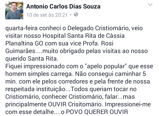 Um médico que trabalha há quase 20 anos no hospital Santa Rita de cássia, postou em sua rede social a surpresa que teve ao ver o Delegado sendo rodeado pela população: