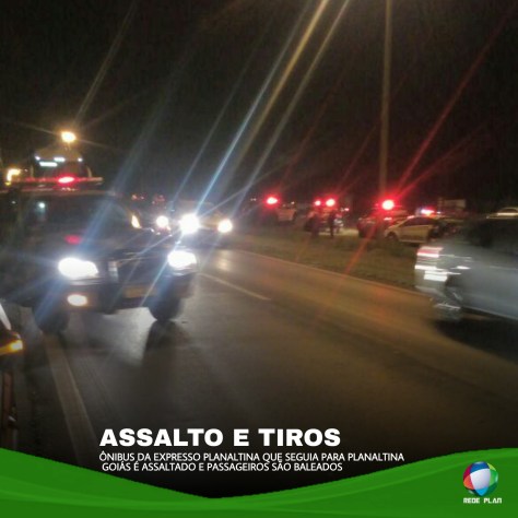 Tiros dentro de ônibus da Expresso Planaltina que saiu da rodoviária do Plano Piloto ontem (23) por volta das 19:40 em direção à Planaltina Goiás. Segundo informações, dois passageiros foram baleados. Um passageiro tentou reagir ao assalto desferindo golpes de faca em um dos assaltantes, que revidou com tiros.