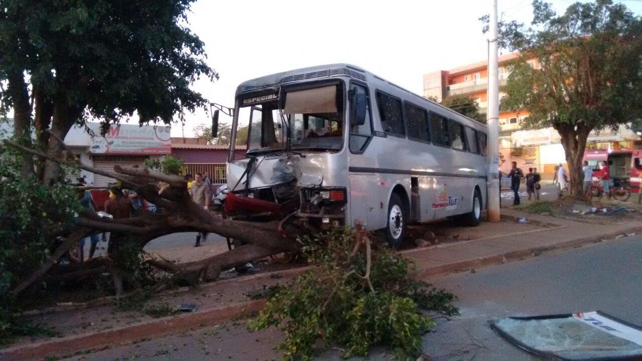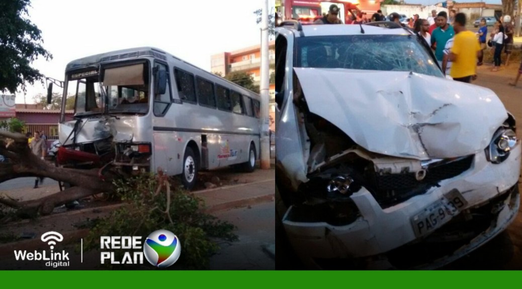 Um carro em alta velocidade colidiu-se contra um ônibus de turismo no balão entre as quadras 08, 07, 01 e 02 Norte, sentido lagoa Formosa.