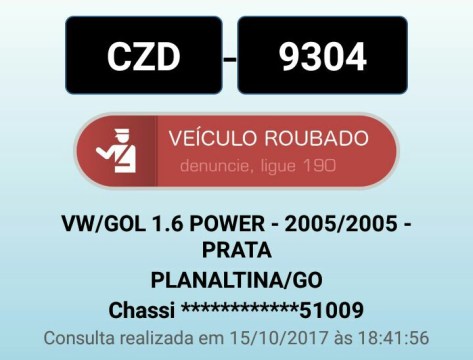 Ontem (15), por volta das 18:15 na Blitz em conjunto entre GCM – Guarda Civil Municipal e PMGO, foi recuperado o veículo VW Gol de Placa CZD 9304 com restrição de roubo e furto, onde os integrantes do veículo foram conduzidos ao complexo da Polícia Civil para seguimento dos procedimentos e devolução do veículo para seu legítimo proprietário.
