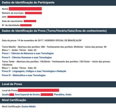 Colocado seu CPF e senha, irá aparecer todas as informações e o local da prova: