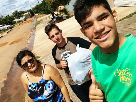 Marcelo Martins, 14 anos, aluno do Colégio Estadual Complexo 03; Victor Guimarães, 15 anos, aluno do Colégio Vôo Livre; Vitória Alves, 16 anos, também aluna do Colégio Vôo Livre. Esses três adolescentes decidiram ajudar o próximo e criaram o “PROJETO ALMAS AMADAS” que visa levar refeição a pessoas que realmente necessitam.
