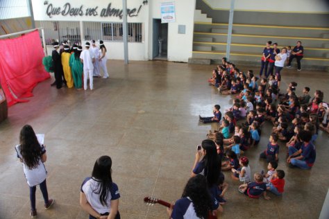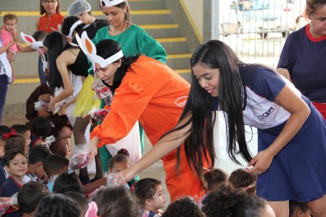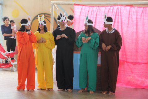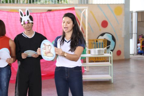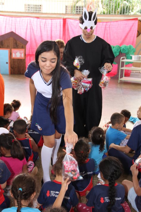 Na manhã desta quarta-feira (17), alunos do CEPI – Dr° Dirceu Ferreira de Araújo (Colégio Estadual de período integral), realizaram uma peça de teatro super divertida sobre o real sentido da Páscoa para as crianças da Creche Filhas de Maria, que fica no Orfanato Filhas de Maria, em Planaltina Goiás.