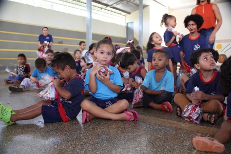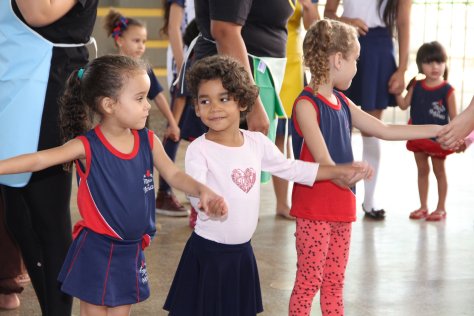 Com muita animação, os pequenos participavam e também prestavam atenção em tudo; dançaram, brincaram e ainda ganharam uma surpresa no final: doces!