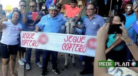 Quem passou pela feira permanente na manhã de ontem (28), se deparou com uma cena inusitada, um candidato a prefeito montado em um jegue, que foi símbolo do que eles chamaram de ‘jeguecóptero’, e tem até música, veja; https://youtu.be/DUsqPz_QmCw