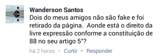 Um dos amigos de usuários bloqueados também comentou pedindo o direito de livre expressão: