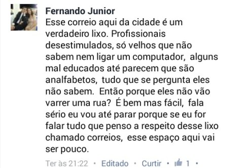 Em outro comentário, um morador demonstra sua indignação contra os funcionários.